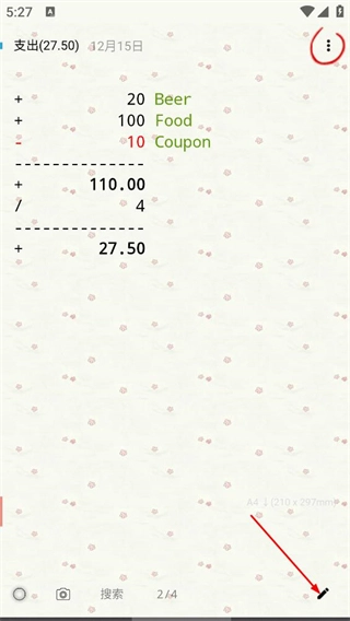 在随手写主页面,点击底部的笔形编辑图标,会弹出操作选项菜单。