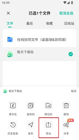 进入文件界面,长按需要导出的文件