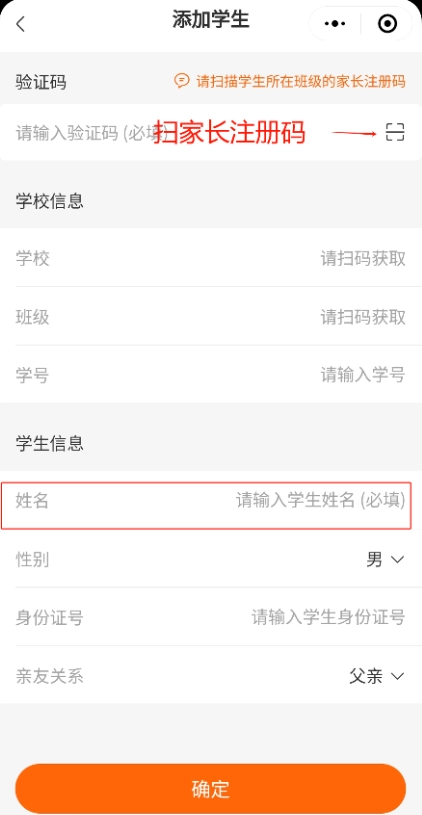 扫描学生班级对应的家长注册码(该注册码可向学生班主任或校方咨询获取),页面会自动展示学校及班级相关信息。随后输入学生姓名、性别、身份证号,以及您与学生的亲友关系,仔细核对信息无误后点击“提交”按钮。待学校或班主任完成审核并通过后,就能成功添加该学生信息了。