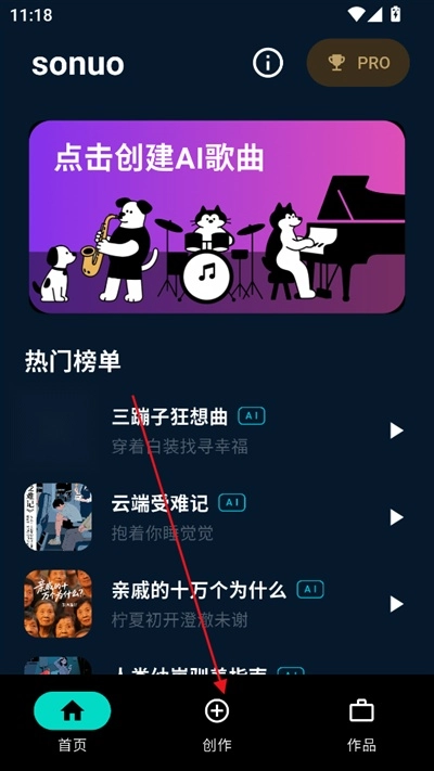 点击“创建”按钮后,软件会利用AI技术来完成音乐创作。