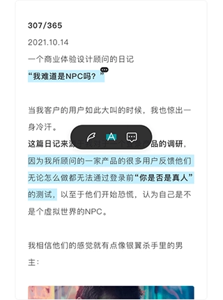 选中文章内容后,你可以为它添加高亮标记,也能附上批注内容,还能将其作为摘抄速记保存下来,方便之后进行整理。
