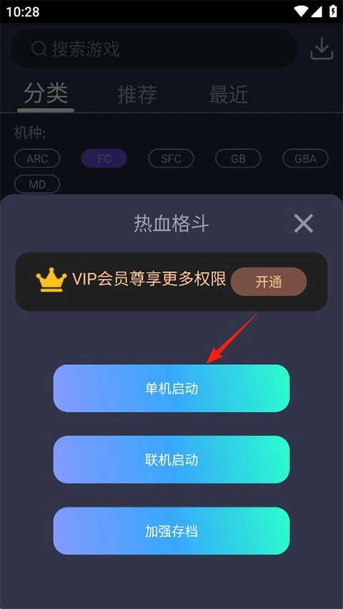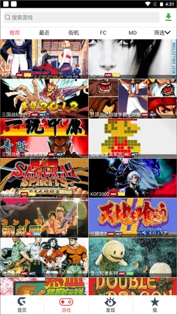 在分类页面滑动浏览挑选,或是通过搜索栏搜索您想玩的街机游戏,点击即可进入游戏。