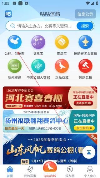 咕咕信鸽是专门面向养鸽群体开发的智能化服务平台,旨在借助便捷的移动终端工具,助力用户高效管理赛鸽信息、提高训放效率并拓展鸽友社交圈。平台整合了全国范围内的公棚、协会与俱乐部资源,提供实时赛事动态、训放路线规划、成绩查询等实用功能,摆脱传统电脑端操作的繁琐,用户只需滑动手指,就能随时掌握爱鸽的比赛进度、学习养鸽知识,轻松融入全球鸽友互动社区。