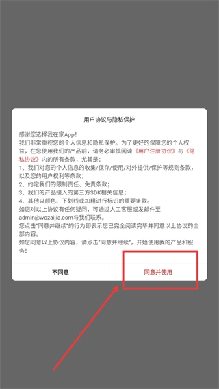 在仔细阅读【我在家App】的《用户注册协议》和《隐私协议》后,点击【同意并使用】按钮,即表示您确认接受相关条款并可进入应用。