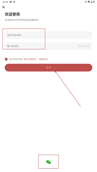 在登录页面,先填写【手机号码】,接着点击【获取验证码】并输入收到的验证码,之后勾选相关协议条款,最后点击【登录】按钮,即可完成账号验证流程。