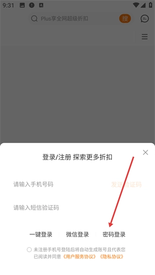 在登录或注册的弹窗里,点击【密码登录】这个选项,就能切换到密码登录的操作界面,之后可以用账号和密码来完成登录流程。