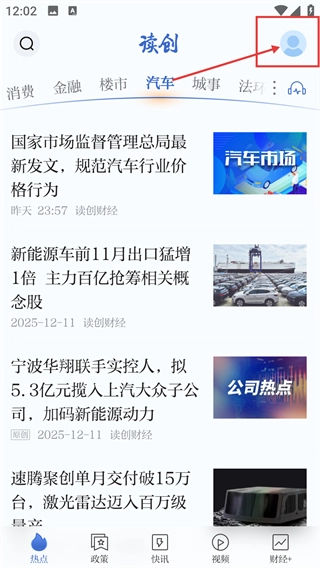 在【读创】首页,点击右上角的个人图标,就能进入个人中心页面,这是开展后续个人功能操作的前置准备步骤。