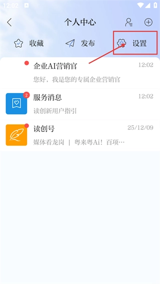 进入【读创】的个人中心页面后,点击【设置】选项,就能进入应用的设置界面,对各类功能进行配置操作。