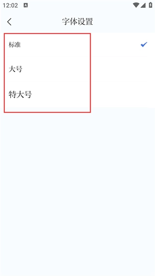 进入【字体设置】界面后,你可以从【标准】【大号】【特大号】这几种字体规格里挑选,选好之后对应的显示效果就会立即生效。