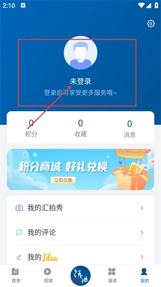 在【视域】页面,点击底部的【我的】选项,进入个人中心页面,为后续的账号登录操作做前置准备。