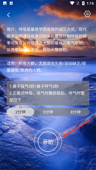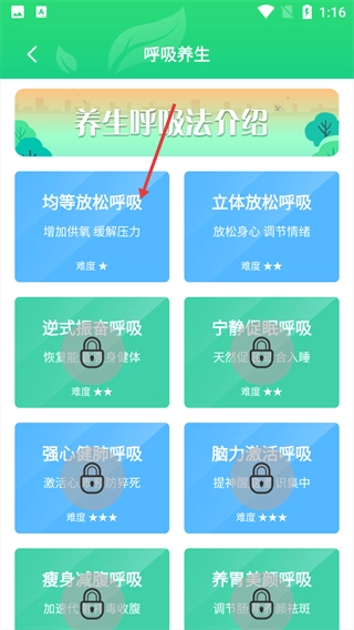 进入【呼吸养生】页面后,选择【均等放松呼吸】方法。