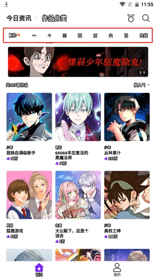 丰富的漫画类别,包含港漫、日漫、国产原创二次元漫画等。