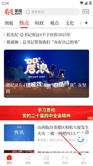 在看度新闻的首页,点击底部的“我的”选项,就能进入个人中心页面。