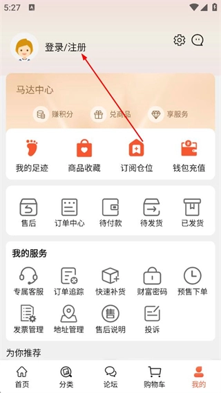 在个人中心页面,点击顶部的登录/注册选项,进入登录页面。