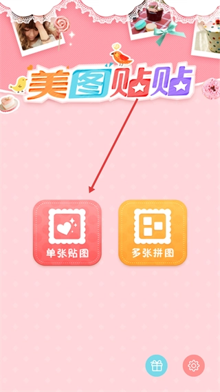 在美图贴贴应用的首页,点击【单张贴图】这个选项,就能进入到本地图片的选择界面。