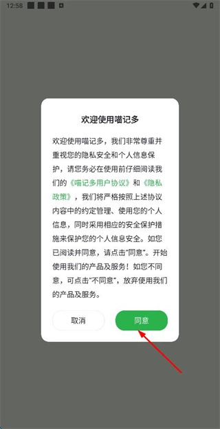 在使用协议与隐私政策弹窗里点击同意按钮后,即可进入登录页面。