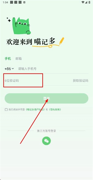 在验证码输入框中填入收到的验证码,点击登录按钮即可完成账号登录。