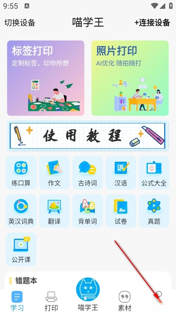《喵学王》是面向小初高学生设计的学习知识打印工具,借助打印机连接功能制作便于孩子学习的资料。软件覆盖多学科内容,助力孩子实现全面提升,支持一键打印错题,更有专业教师在线授课讲解,助力孩子提升学习成绩,让学习过程更轻松高效。