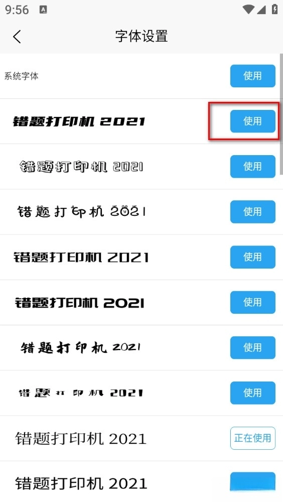 最后选择需要的字体点击使用即可