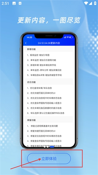 可以查看【更新内容-一图尽览】中的功能优化点,确认无误后点击【立即体验】按钮,进入应用即可开始使用相关监控功能。
