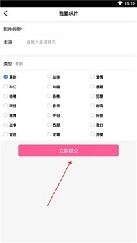 在求片社区页面,找到并点击右上角的【我要求片】按钮。