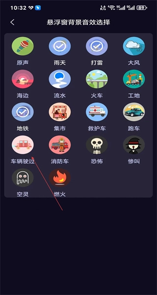 选定音效后,点击左上角的返回按钮,回到悬浮窗设置页面,确认音效设置是否生效。