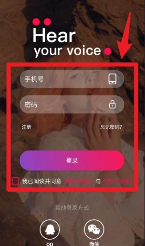 打开应用后,进入登录界面,输入手机号和密码,勾选同意《隐私政策》,也可以选择通过微信快捷登录。