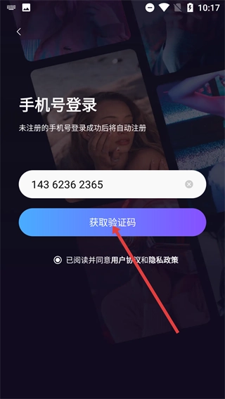 进入手机号登录的页面后,先填写好手机号,接着点击获取验证码的按钮,在此过程中记得勾选相关的协议。