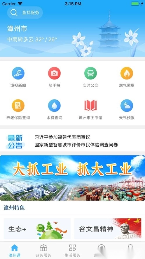 “漳州通服务”是漳州市委、市政府为推进政务服务改革,提升公共服务水平与社会治理能力,落实信息惠民政策而推出的重要举措。作为全市统一的公共服务移动端入口,该平台整合政务信息资源,汇聚并融合多项便民服务,让政务服务实现“掌上轻松办”,致力于打造一个集本地资讯、政务服务、生活服务、政民互动于一体的一站式公共服务平台。