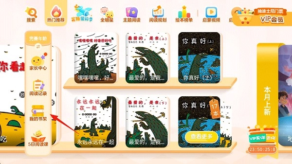 在书架中点击可以免费的绘本。