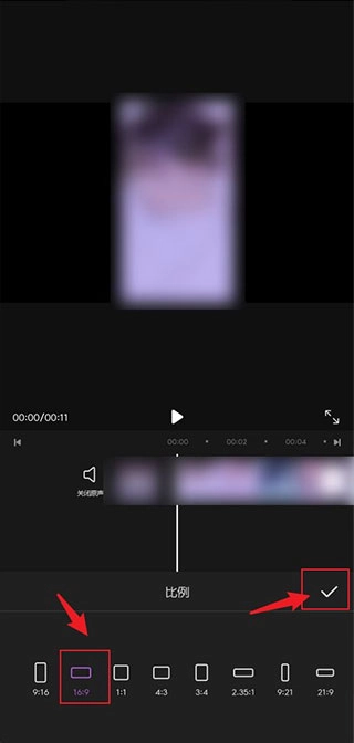 进入编辑界面后,把底部菜单向左滑动,找到“比例”选项,点击进入,具体操作可参照图示。