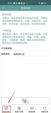若检疫结果不符合要求,需填写具体的不合格缘由,随后点击【检疫不合格】按钮。
