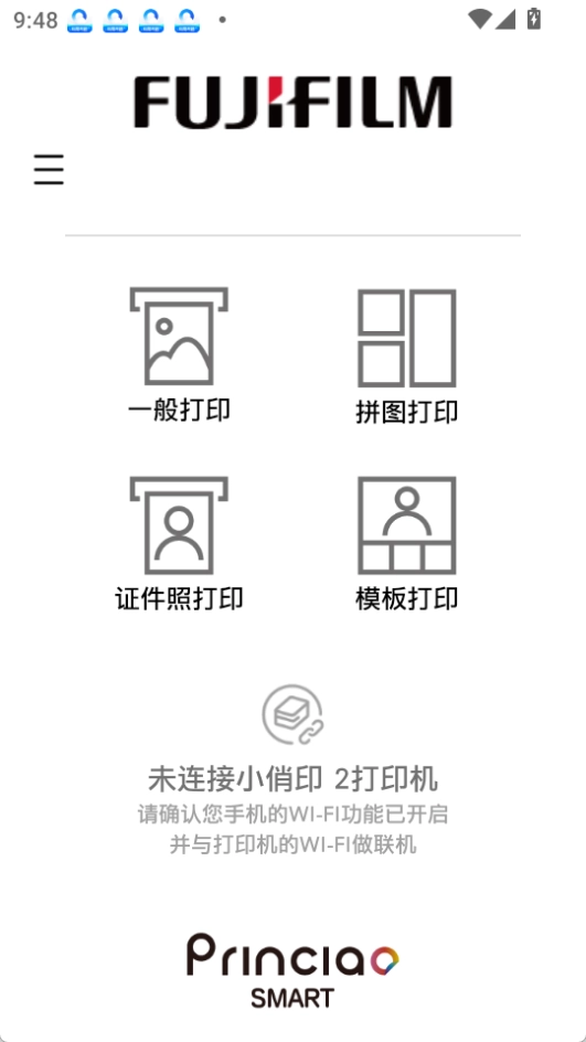 然后打开富士打印应用,选定对应的打印机型号,同时要保证手机的WiFi功能处于开启状态,并且已与打印机成功联机。