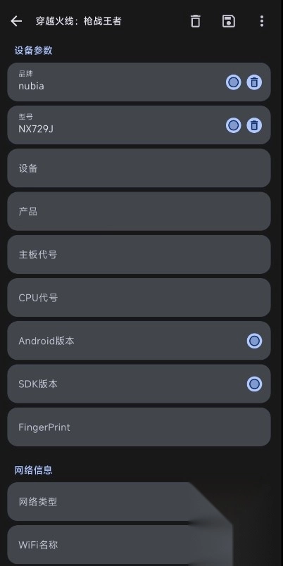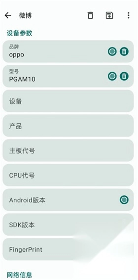 模块修改:可对品牌、型号、网络类型、WiFi信息、SIM运营商等多种设备信息进行修改。