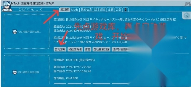 点击游戏库能够查看已导入的游戏,还可以设置封面图并点击启动游戏。