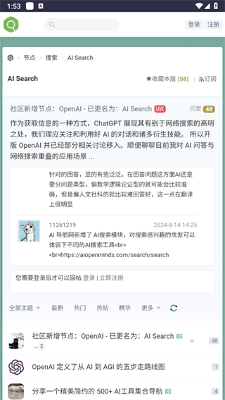 进入【AI search】板块,就能浏览到最新的AI使用心得交流内容。