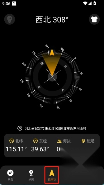 安装并打开指南针方位助手应用,点击底部的【指南针】选项,然后在空旷的地方按照提示完成校准操作。校准结束后,指南针就会显示出东西南北的方位信息。