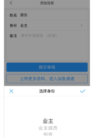 普通申请的操作流程为:先选择房号,接着输入真实姓名,再选择身份,最后提交即可。