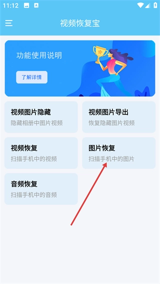 在【视频恢复宝】的主界面中,点击【图片恢复】功能选项,即可进入图片导出的筛选设置页面。