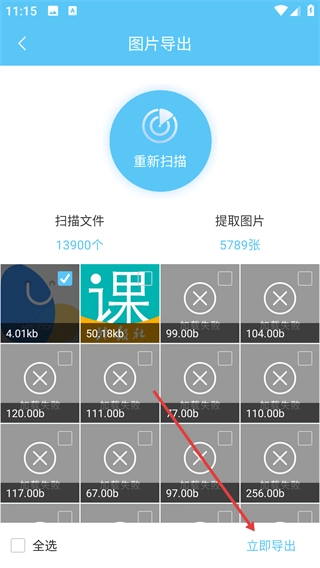 扫描完成后,勾选需要导出的目标图片,接着点击页面右下角的【立即导出】按钮,这样就能启动导出流程了。