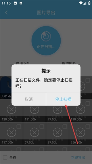 若要中断扫描,可在弹出的【提示】弹窗里点击【停止扫描】按钮,以此终止当前的扫描操作。