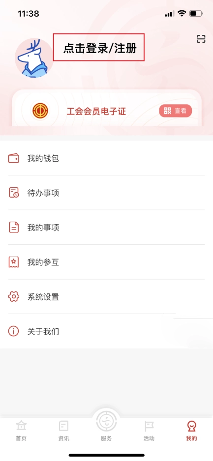 第一次登录的用户点击我的,选择登录/注册。
