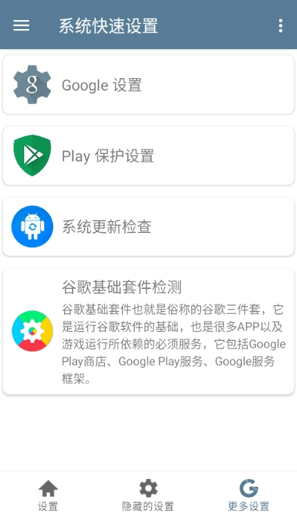 谷歌套件检测功能:可自动检测手机是否已完整安装谷歌服务框架(GMS),并及时反馈其兼容性状况。