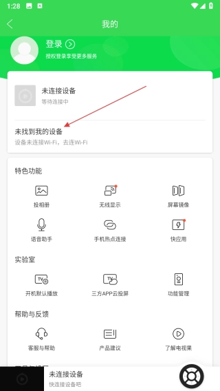 在个人页面中,点击未找到我的设备选项,进入未找到设备的设置页面。