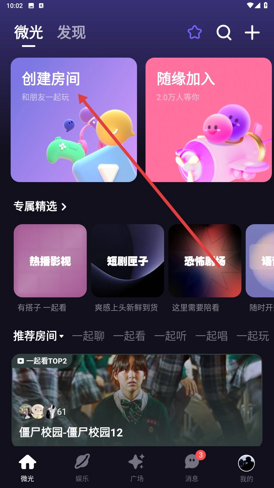 打开应用后,点击【创建房间】按钮,就能开启一个可以和朋友互动的专属空间啦。