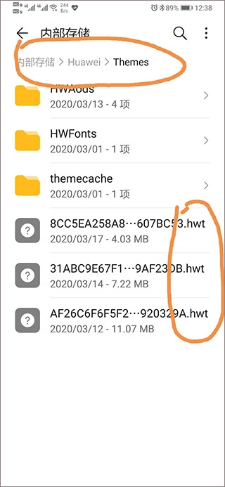 把在酷安里准备好的文件复制或者移动到内部存储里的Huawei文件夹下的Themes子文件夹中。