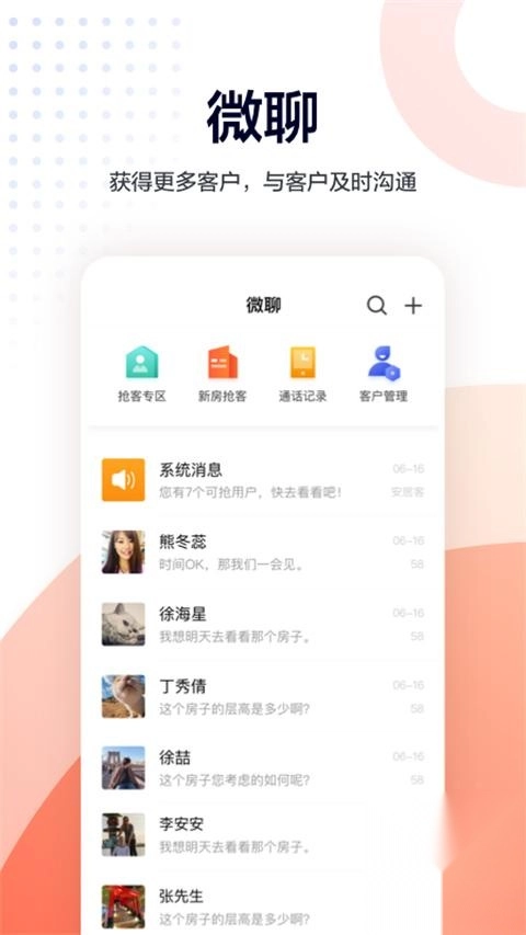 客户沟通方面,借助即时通讯工具,可采用文字、语音、视频等多种沟通形式,助力经纪人与客户开展实时互动并及时解答疑问。