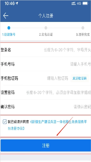 个人注册需按照提示和要求,依次输入登录名、手机号码、手机验证码、登录密码,并设置密保问题,即可完成注册流程。