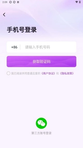 输入手机号和验证码即可成功登录,方便你马上开启交友聊天之旅。