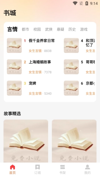 支持订阅专区,多个题材以及多种风格的书籍资源都有。
